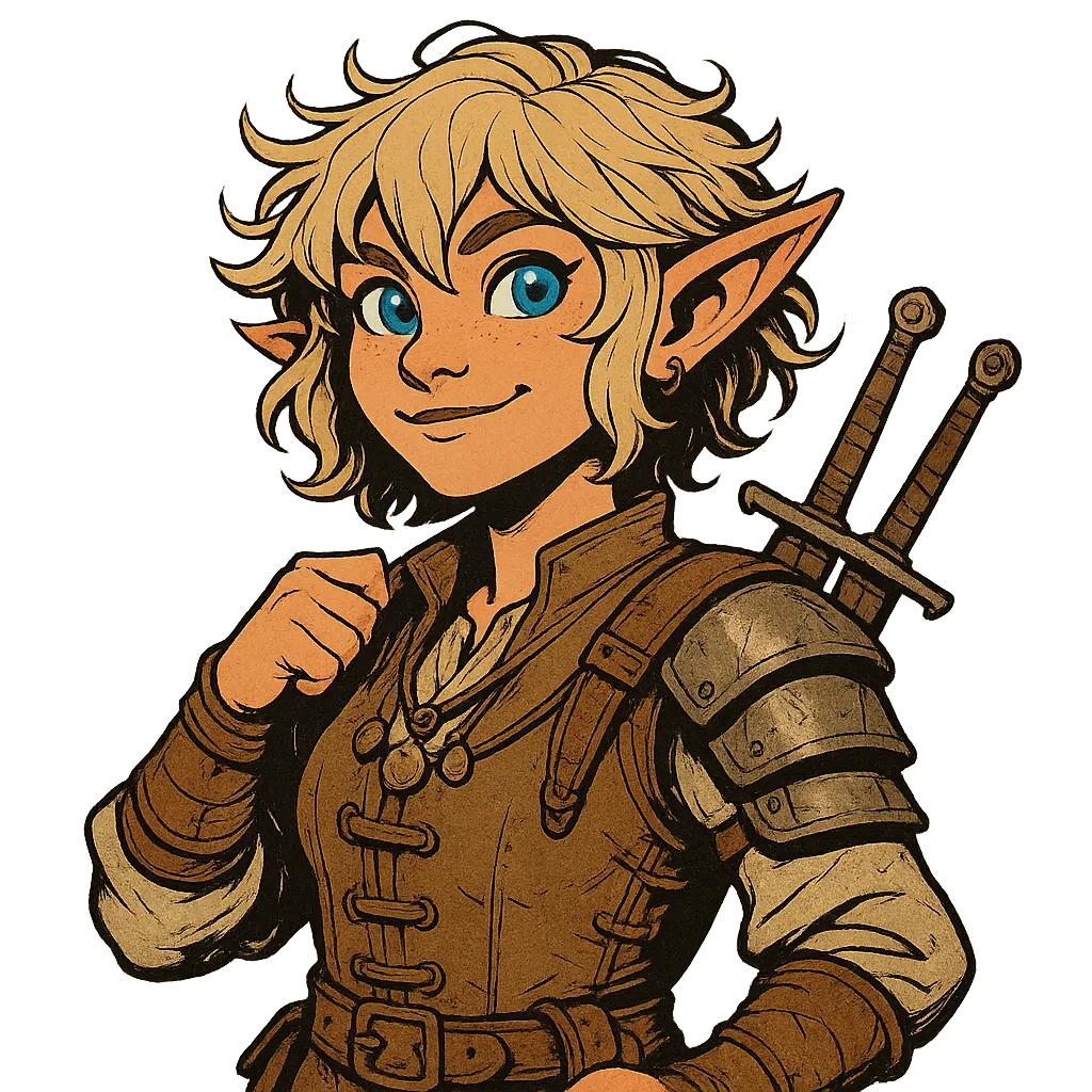 A halfling rogue from Brandyburrow, Momeline left her peaceful home in search of adventure and excitement. Quick-witted and nimble, she thrives on mischief and the thrill of uncovering secrets. With a natural talent for sneaking, lockpicking, and charming her way out of trouble, she brings a playful but pragmatic edge to the party. While her small stature and friendly demeanor make her easy to like, many would be surprised to learn she’s just as deadly as she is charming. She’s a natural assassin whose precise strikes and stealth make quick work of her enemies.