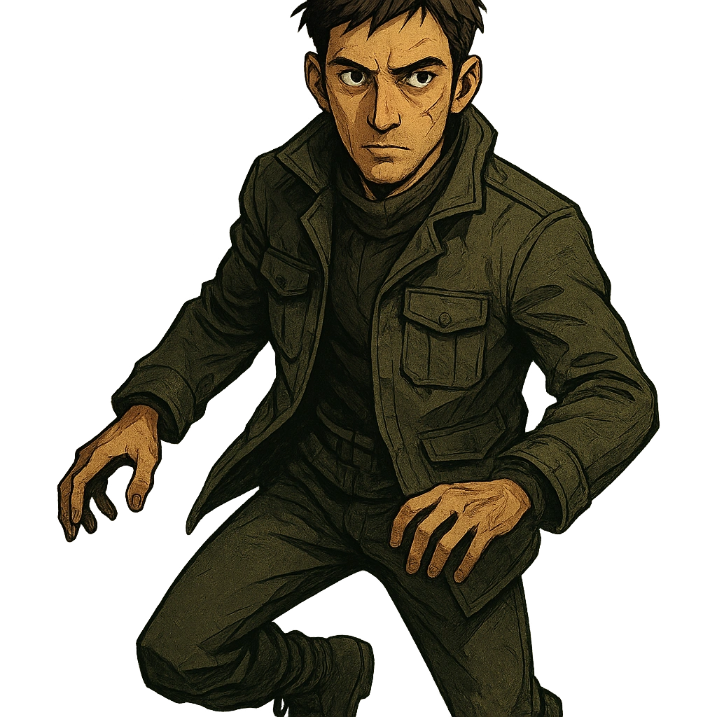 Edwin is a wiry, quick-moving man in his thirties with the perpetually watchful eyes of someone who’s made a career of not getting caught. He dresses in nondescript, practical clothing that helps him blend into crowds—dark colors, multiple hidden pockets, and boots made for running rather than fashion.