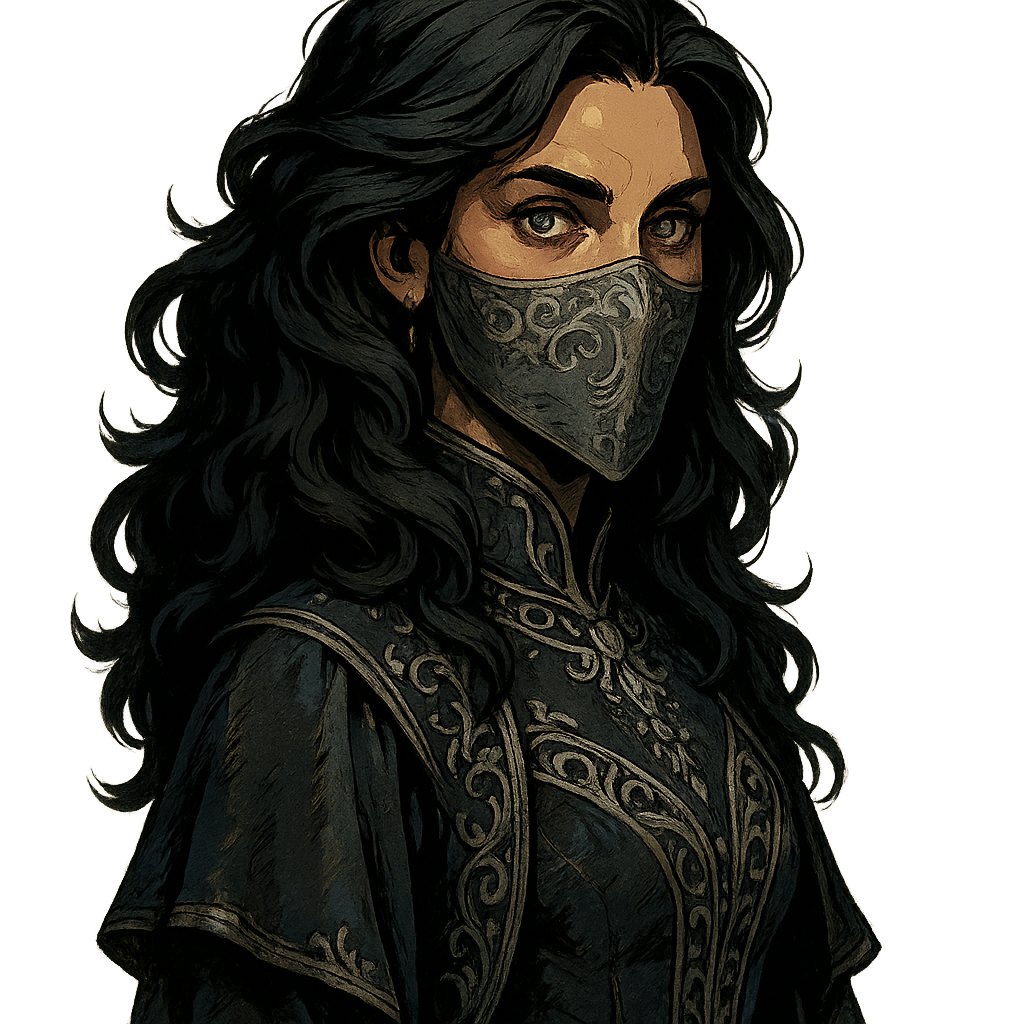 Like all members of the Thornbrook family and their court, Lady Sylenna observes the strict humility laws of their branch of the Church of Elandria, wearing an ornate silver veil that covers the lower half of her face whenever she appears in public. Her voice is soft but carries an undeniable authority, and she moves with the practiced grace of someone born to rule.