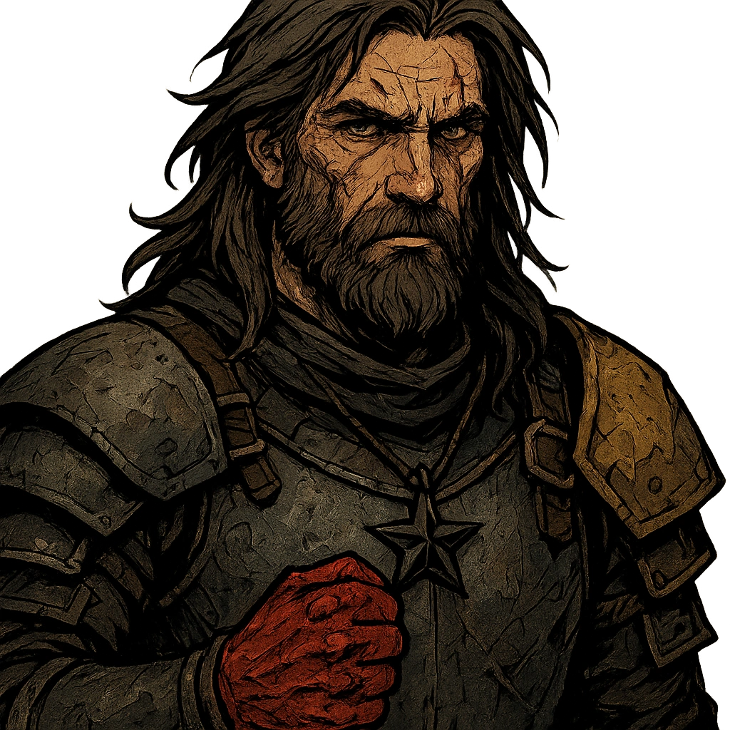 Rothgar is a pragmatic zealot, a dangerous combination. He believes wholeheartedly in the Order of the Black Star’s teachings, but he’s also experienced enough to know how to survive. He’s brutal when necessary but not needlessly cruel, preferring efficiency over spectacle. He commands through a mixture of respect earned from his veteran status and fear inspired by his cult connections. His men know he’s connected to something dark and powerful, which keeps them in line even when morale is low.