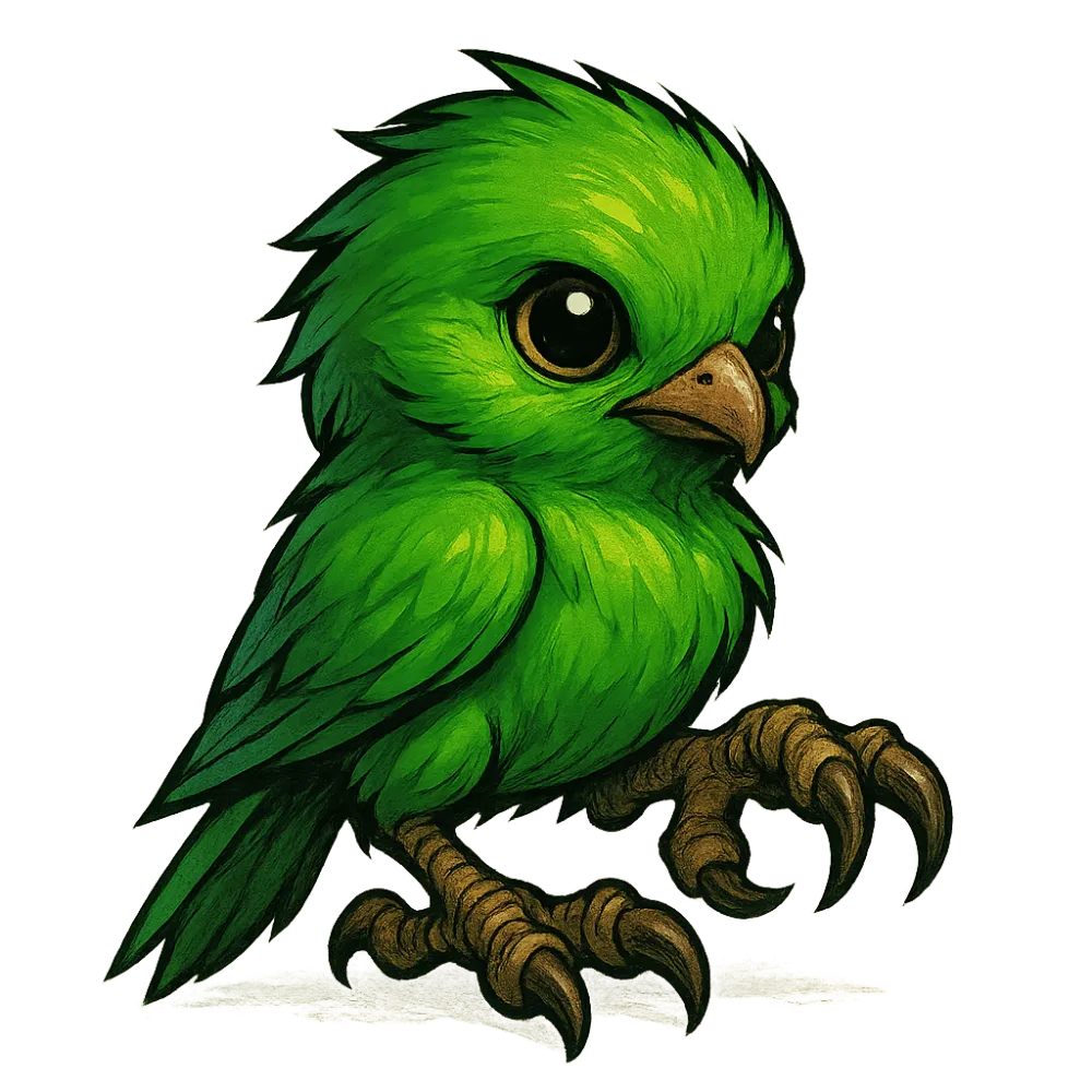 When he wild shapes, his preferred form is a small green bird with oversized talons—a fitting manifestation of his name, Windfern.