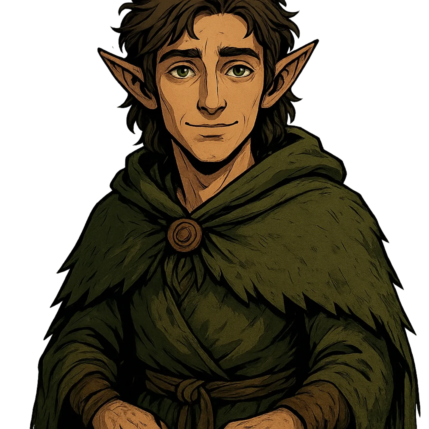 A slight, wiry young half-elf with moss-colored eyes and tangle-brown hair that looks like it hasn’t seen a comb in days. Dirt stains his robes, and his hands are calloused from time spent in the wilds. He used to have a perpetually frightened look, his voice sharp and wary like a bird expecting a snare, but after the Queen’s trial he’s become noticeably more relaxed—thanks to some fortuitous gummies.