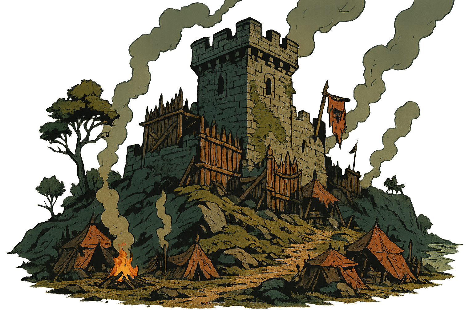 In recent times, the keep fell into disrepair, maintained only lightly as the focus of Solaran military power shifted elsewhere. Now, the ancient fortress has been violently seized by goblin forces under Warchief Ghorzak the Red. The goblins have torn down sections of the old walls, erected crude palisades, and transformed the grounds around the keep into a sprawling war camp. Smoke rises from countless fires, wolf riders patrol the perimeter, and the once-proud symbol of Solaran expansion has become a staging ground for raids against the farmlands and a chokepoint preventing supply routes to Southaven.