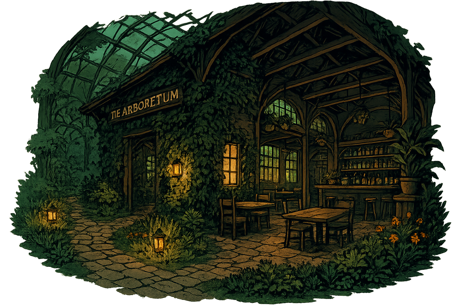 The arboretum is a well-known dining establishment in Balandel known for its home-made brews, wines, and liqueurs. The Arboretum’s owner, Serelion Vael also owns the Scarlet Shield Tavern, the only tavern in Balandel open to strangers that do not have city passes.