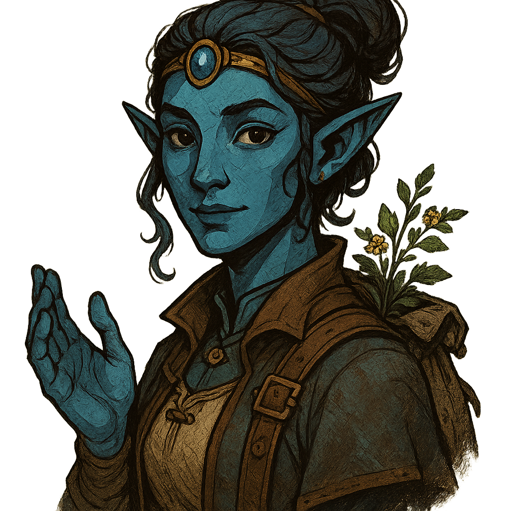 The people of Fadrín are known for their warmth and hospitality, though they carry themselves with the serene patience of the mountain winds. They are skilled in songcraft, weaving, and guiding travelers through the dangerous high passes, often seen as guardians of the border where forest and mountain meet. Though smaller and quieter than the great cities of the Elfwood, Fadrín is revered for its beauty, harmony, and the otherworldly grace of its blue-skinned folk.
