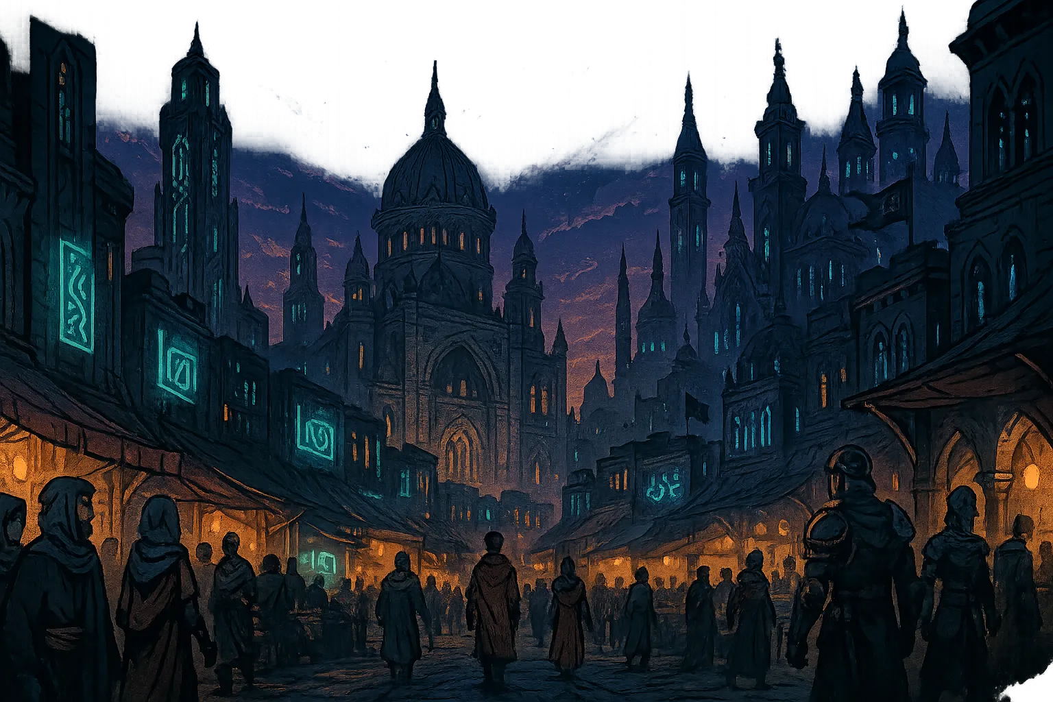 Lusteris is a bustling, cosmopolitan city-state located in the heart of the Deadlands, the vast desert that stretches east of the Pale Mountains. As the only major settlement in the region, Lusteris serves as a melting pot of cultures, religions. Just like a modern city, there are skyscrapers, neon lights (powered by magic), and bustling streets. The city is divided into districts, each with its own unique character and purpose. The city is known for its vibrant nightlife, bustling markets, and thriving underworld activities. Despite its harsh desert surroundings, Lusteris is a hub of commerce, culture, and intrigue, attracting travelers, traders, and adventurers from all corners of the world.
