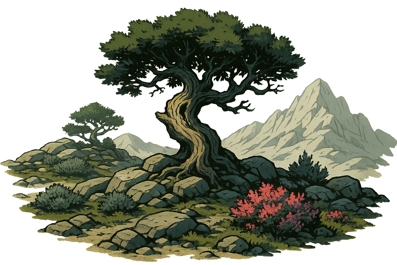 Stretching like a jagged spine along Solara’s eastern frontier, the Pale Mountains are a realm of stark beauty and hidden peril. Their pale granite cliffs and sun-bleached slopes give them their name, but life clings stubbornly here: ancient juniper pines twist from cracks in the stone, and hardy shrubs cling to the high ridges. In the evenings, the setting sun paints the peaks in crimson and gold, while in winter they stand cold and austere beneath a crown of snow.